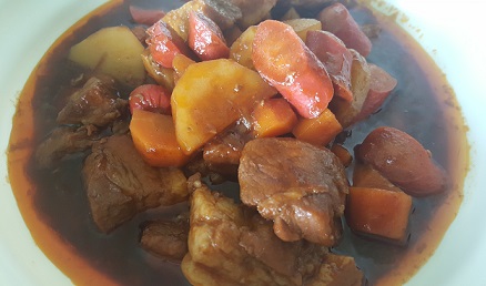 8. If you think the Pork is almost tender, Add the Potato and Carrots and Let it cook for 15 minutes more.